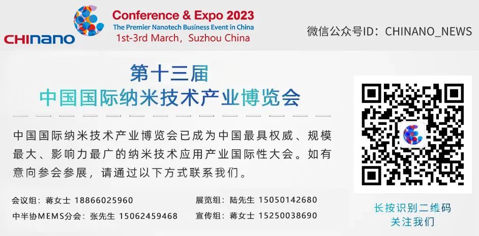 在此背景下,全球第二大纳米技术展会“CHInano 2023第十三届中国国际纳米技术产业博览会(The 13th CHInano Conference & Expo)”将于2023年3月1日-3日在苏州国际博览中心举办,立足全国,放眼世界,汇聚全球范围内的纳米技术顶尖专家学者和产业界翘楚,共同探讨先进纳米技术产业发展大势,为促进先进纳米技术产业卓有成效地全面发展提供国际性合作交流的平台。
