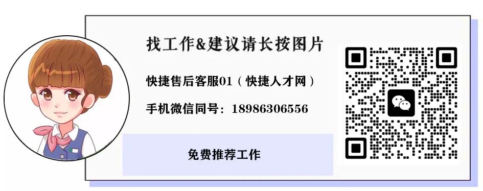 阅读本文前,请您先点击上面的“快捷人才网hr1000”,再点击“关注”,这样您就可以继续免费收到每日最新招聘信息。