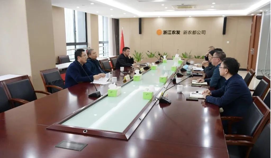2月17日,农发集团党委副书记、总经理毛利豪一行来到新农都公司调研。集团相关部(室)负责人陪同。新农都公司党委书记、董事长沈金潮等班子成员以及相关职能部(室)负责人参加。