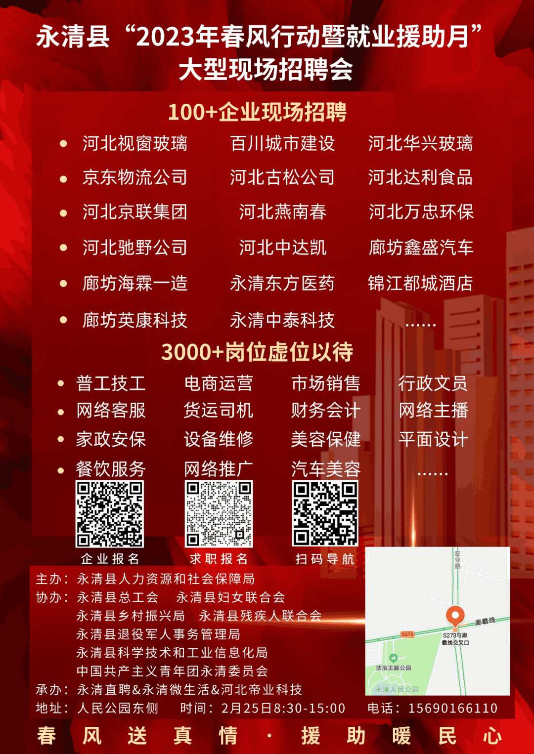 100+家企业3000+个岗位!2月25日,永清这里有一场大型招聘会