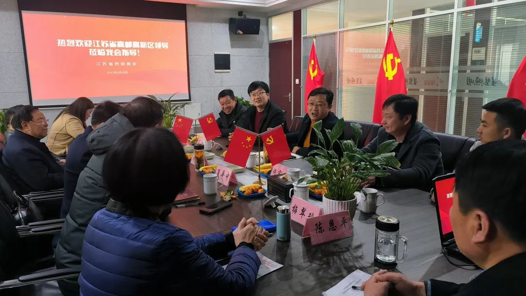 2月20日,江苏省(高邮)高新区领导曹国中(党委副书记)、丁伟(经济发展局局长)、施宏俊(招商局副局长)等一行莅临江苏省照明商会交流指导工作,我会会长胡广太、党支部书记夏平中、副会长王正兴、张宗雷和秘书处热情接待。