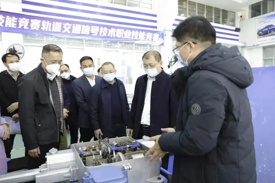 本次竞赛是2022年纳入广东省行业企业职业技能竞赛项目,由广东省人力资源和社会保障厅指导、广东省交通运输协会主办、广州市交通技师学院承办、重庆联众智能科技有限公司提供技术支持。广州市人力资源和社会保障局二级调研员黄建光、广州市职业能力建设指导中心尹伊主任、广东省交通运输协会昌国军秘书长、全国铁道通信信号专业教学指导委员会主任胡邦曜教授(竞赛专家组长)、全国铁道通信信号专业教学指导委员会秘书长莫振栋教授(竞赛裁判长)、广东省交通运输协会李华荣主任、广东省交通运输协会梁海明主管、广州市交通技师学院曾威院长等嘉宾出席了开幕式。