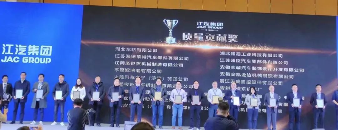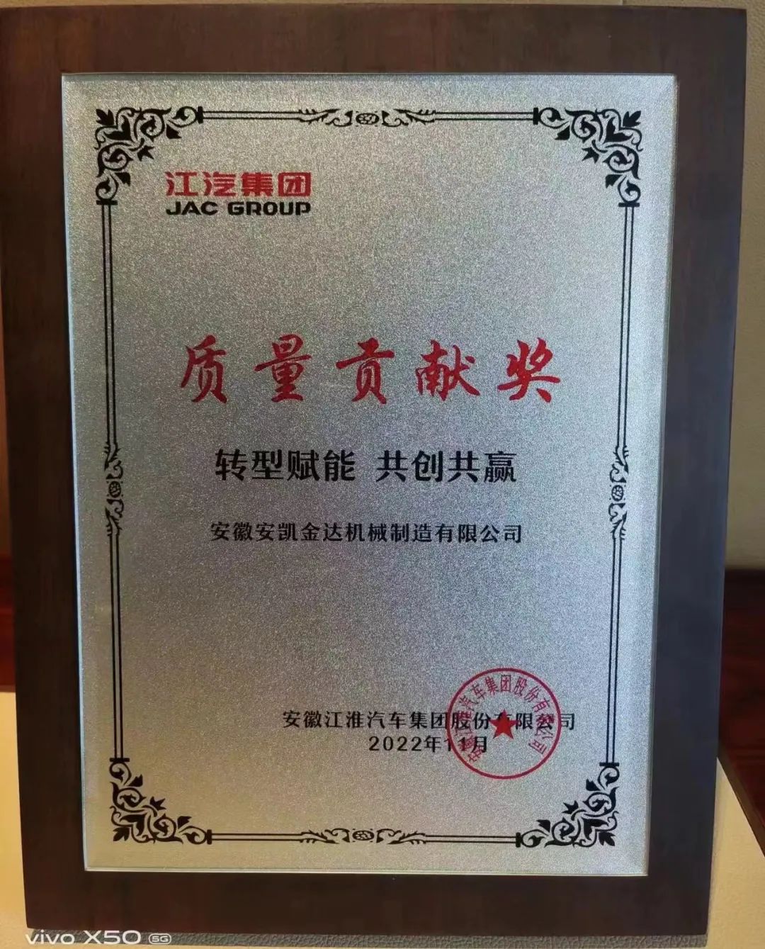 以“转型赋能 共创共赢”为主题的江汽集团2023年供应商大会于2月15日在合肥召开,安凯机械公司被授予“江汽集团2022年度质量贡献奖”,受到大会表彰。