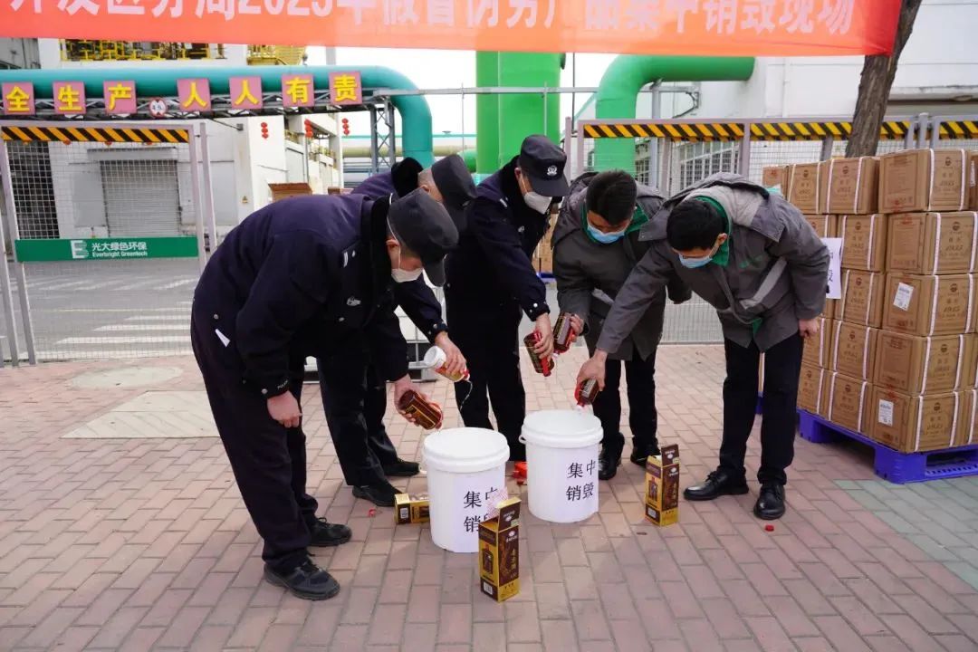 “咔嚓、咔嚓……”随着碎裂的声音不断响起,一瓶瓶“高档酒品”被碾为碎片,空气中弥漫着浓烈的酒味……2月2日下午,山东省淄博市公安局经济开发区分局联合光大环保危废处置(淄博)有限公司,对前期查获的假酒进行集中销毁。活动中,经开区公安分局民警将侦结案件中查扣的400余箱假冒酒类和假冒注册商标、包装材料等涉案物品进行逐一清点、核对、登记后,交由销毁方进行破碎,确保每一瓶酒都完全彻底销毁。2022年1月,经开区公安分局民警在办案中发现,自2021年6月至2022年1月,犯罪嫌疑人分7次从线上购进假冒注册商标的酒厂(集团)保健酒业有限公司、贵州茅台酒股份有限公司的多款假酒对外销售,涉案金额达408500元。目前,该案犯罪团伙被一举打掉,犯罪嫌疑人均已被抓获,有效震慑了犯罪,维护了消费者的合法权益。此次活动充分彰显了经开公安护航经济秩序稳定、维护民生安全的决心和信心。下一步,我们将加大对生产、销售伪劣产品违法犯罪行为的打击力度,切实保障广大群众舌尖上的安全。经开公安提醒广大市民:在购买相关商品时,一定要从正规渠道购买,切勿贪图便宜,谨防上当受骗。