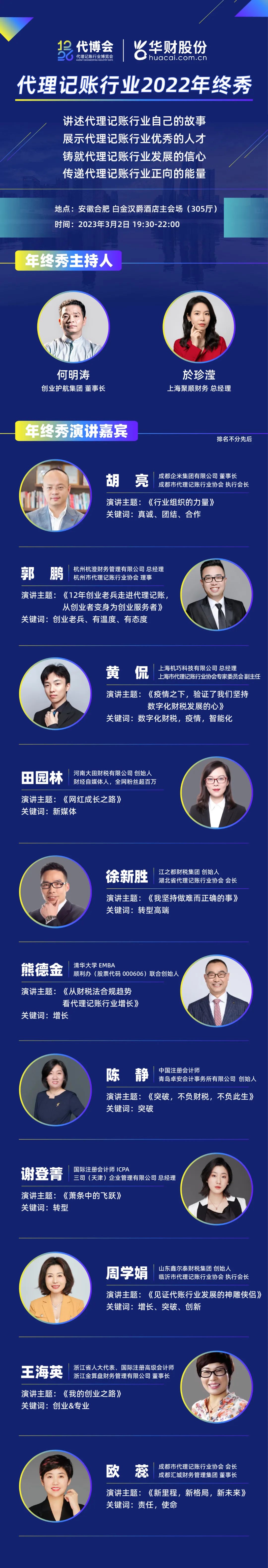 数字化转型时代到来,行业迎来转折点,野蛮生长的时代已过,但震荡、变革中,也孕育着新的希望。本次代博会组委会邀请12位行业优秀人才讲述自己的代账故事,展示代理记账行业优秀的人才;铸就代理记账行业发展的信心;传递代理记账行业正向的能量。