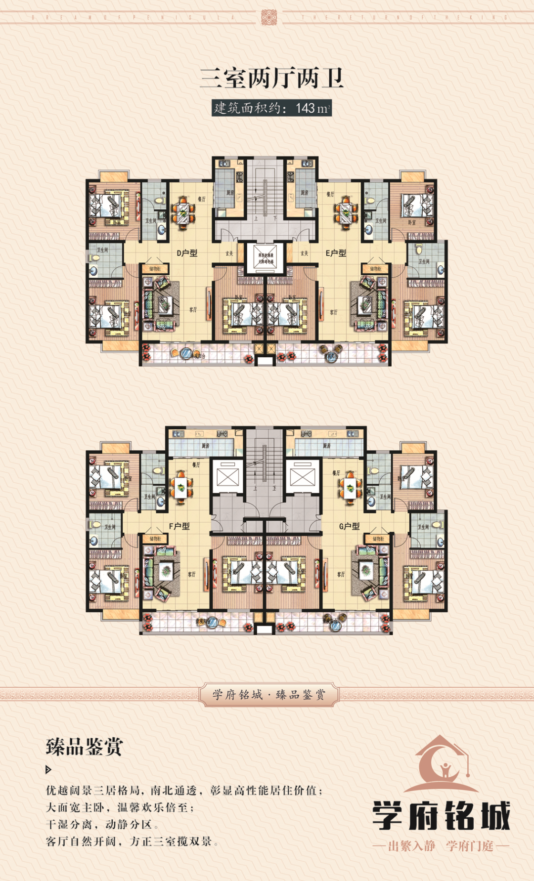 小区户型南北通透,采光度好,绿化、日照、通风、户型等设计理念标准高,小区整体以新中式风格为主,有较高的居住升值潜力,旨在营造出性格各异的人性化、现代化居住社区。