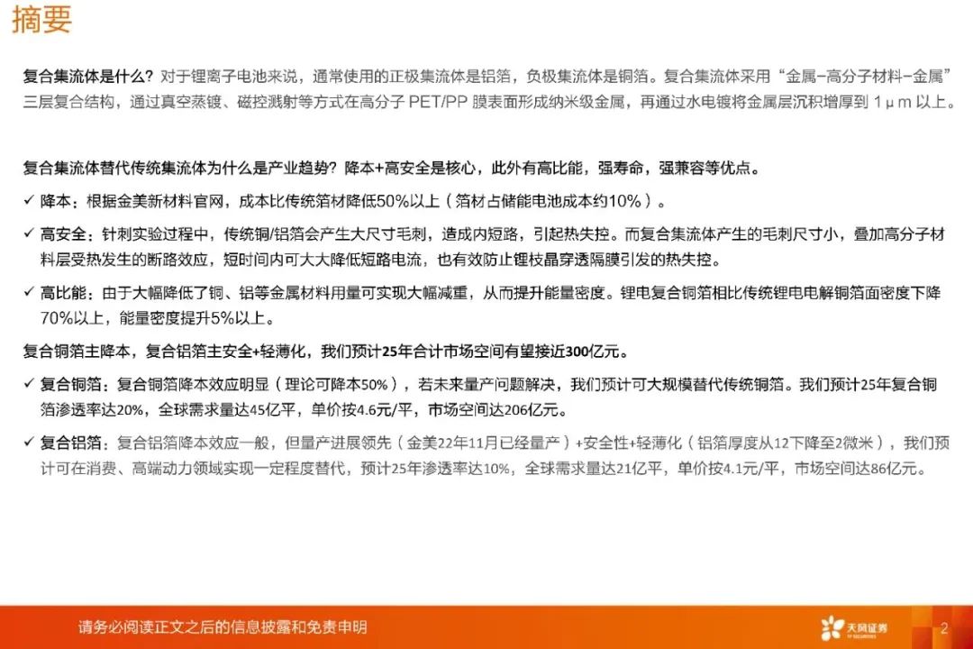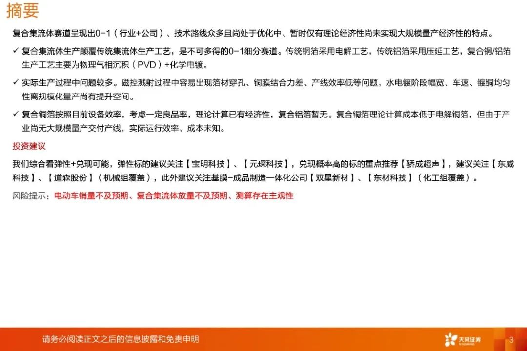 复合集流体赛道呈现出0-1(行业+公司)、技术路线众多且尚处于优化中、暂时仅有理论经济性尚未实现大规模量产经济性的特点。