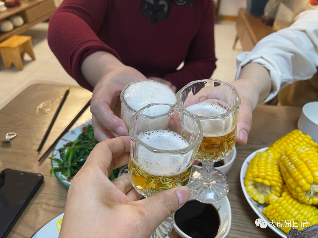 不到二月二,还是过年酒,就一小罐子青啤,喝起来像清洌甘甜的泉水。