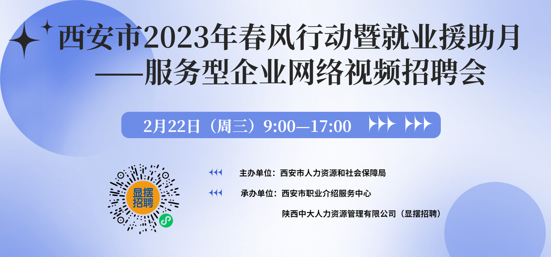 活动名称:西安市2023年春风行动暨就业援助月——服务型企业网络视频招聘会