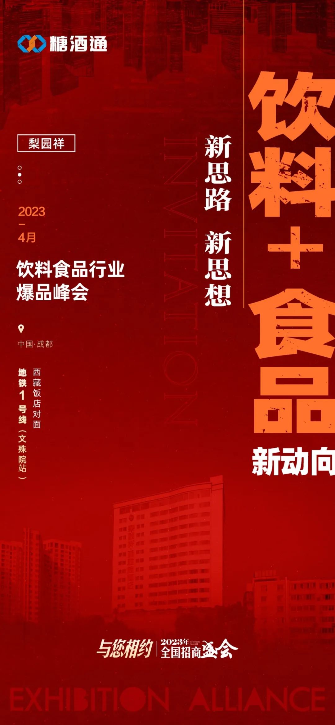 梨园祥位于万福桥头,毗邻西藏饭店,经销商必到之地。WBHT会展联盟强强联手,共同打造。食品饮料不分家,商家选品一站式完成,参会企业更多、招商更多、性价比更高,2023年食品+饮料行业新动态。