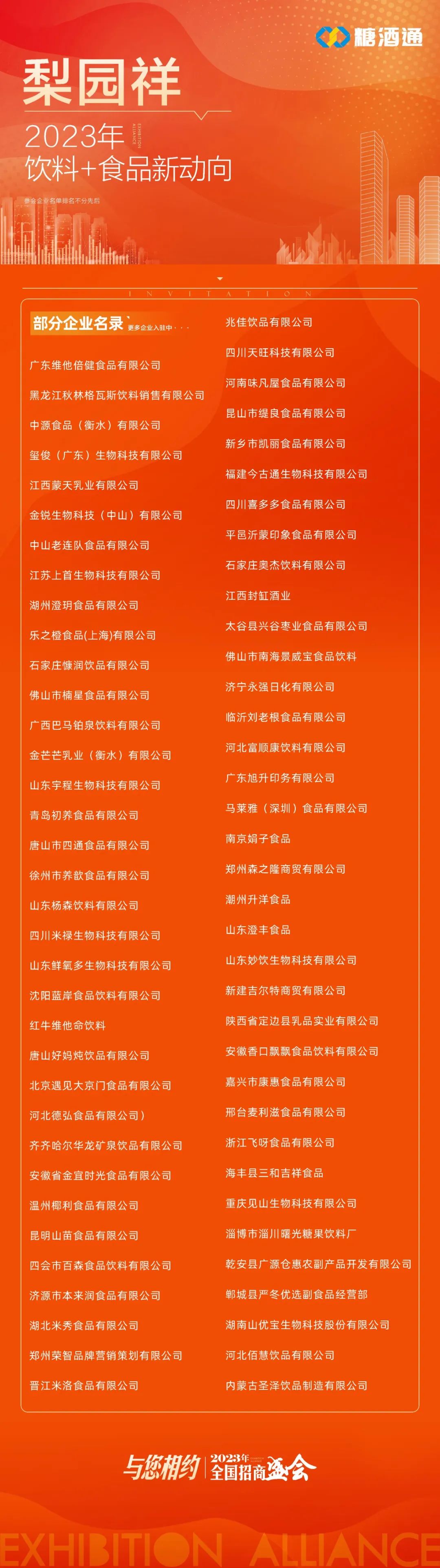 糖酒会可以说是会展行业集万千宠爱与一身,参会企业的积极、经销商与专业观众的认可。每届糖酒会都是热闹至极,数据显示每年参展的企业只占到食品饮料企业的15%,众多知名企业提早抢定了位置。格瓦斯,蒙天乳业,四川米禄,红牛维他命,金维他食品等早已入驻梨园祥-食品、饮料专区。