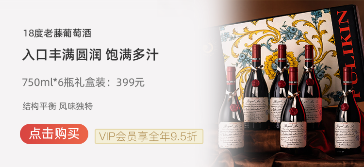 再经过长达18个月橡木桶陈酿...最后才出这么一瓶,满满都是精华!三大明星品种:黑罗曼、桑娇维塞、普米蒂沃混合酿造独特风味!什么叫“轻闻浅嗅,典雅高贵心醉...”只尝一口就懂了!每瓶酒上都有老藤枝杆,包装很有特色,处处彰显酒是老藤树采摘的印记!某宝一搜售价都在400以上,今天咱们399元直接6瓶,还是精美礼盒装!