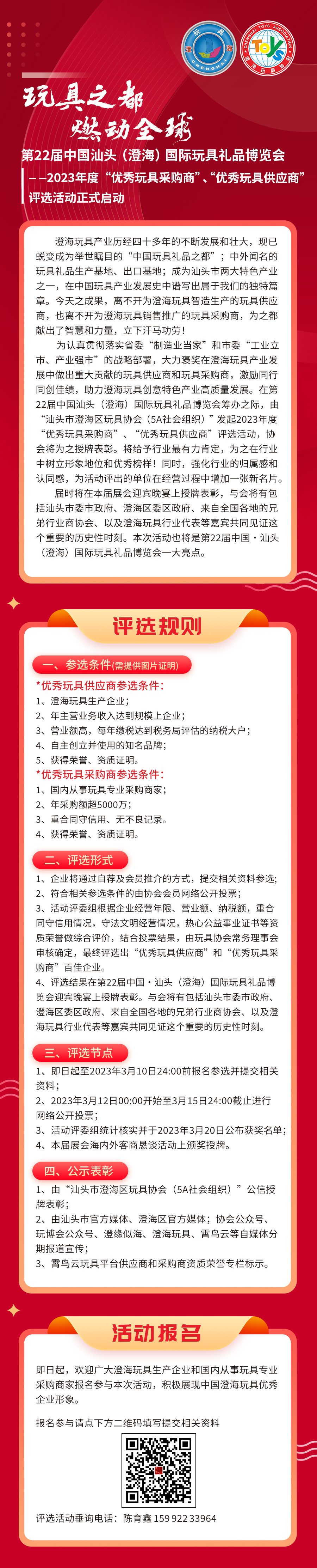 第22届玩博会诚邀您参加2023年度“优秀玩具采购商”、“优秀玩具供应商”评选活动