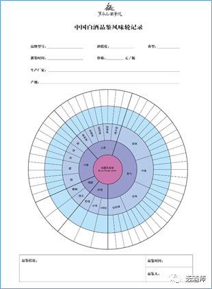 为了方便大家使用白酒风味轮品鉴记录,李寻老师又设计了一个反演法白酒风味轮的标准图表,有需要电子版的可以联系李寻老师的助理。