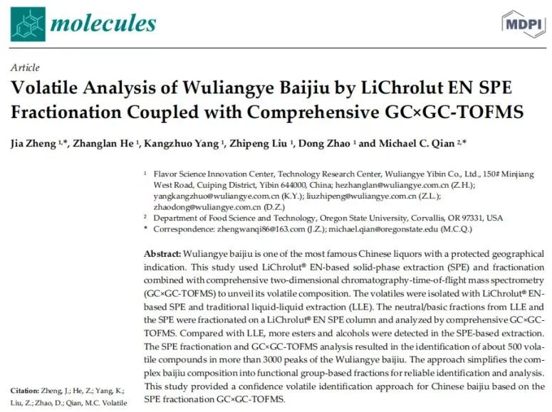 Molecules杂志文章:第八代五粮液中首次检测到超3000种化合物