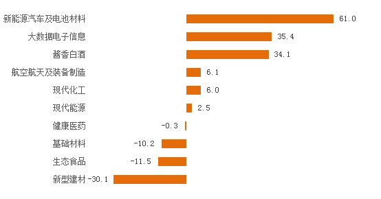 十大工业产业总产值同比增长(单位:%)