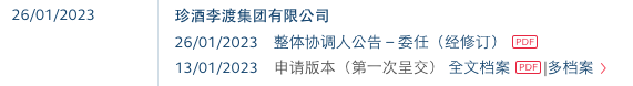 2023年1月13日,珍酒李渡集团有限公司(简称为“珍酒李渡”)向港交所递交招股书,拟登陆港交所主板,是首家赴港上市的白酒企业。