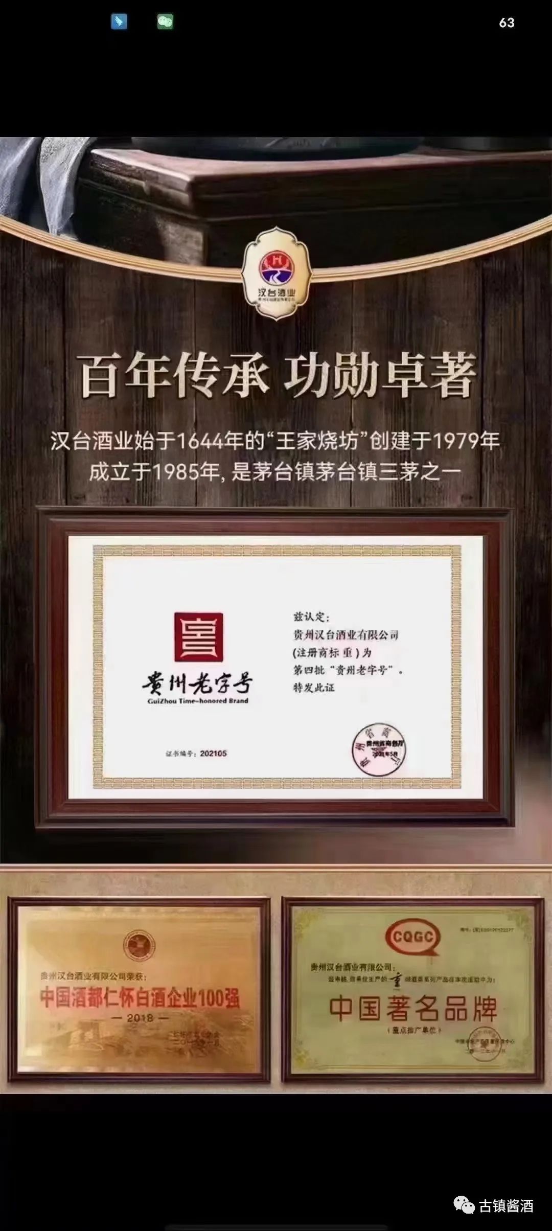 贵州汉台酒业有限公司坐落于驰名中外的茅台镇红军四渡赤水河码头,与茅台隔河相望,毗邻不足一华里,同处优质酱香型白酒7.5平方公里产区中的区段,同取一河之水(赤水河),同享土壤、气候、水源和微生物群等酿酒自然生态环境资源,同酿美酒。