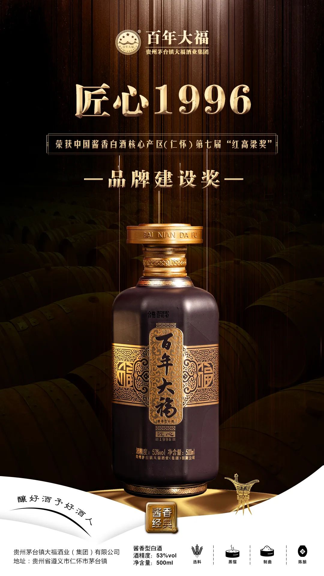 2月17日,由贵州省仁怀市酒业协会主办的中国酱香白酒核心产区(仁怀)第七届“红高粱奖”颁奖典礼在酒都仁怀举办,百年大福凭借自身硬核实力,以世代传承的匠心精神,成功突围、荣获“品牌建设奖”!