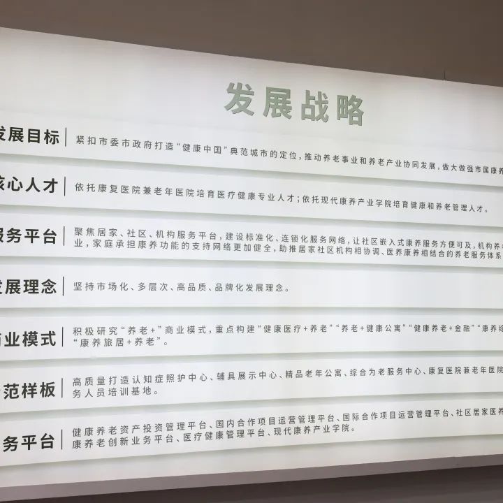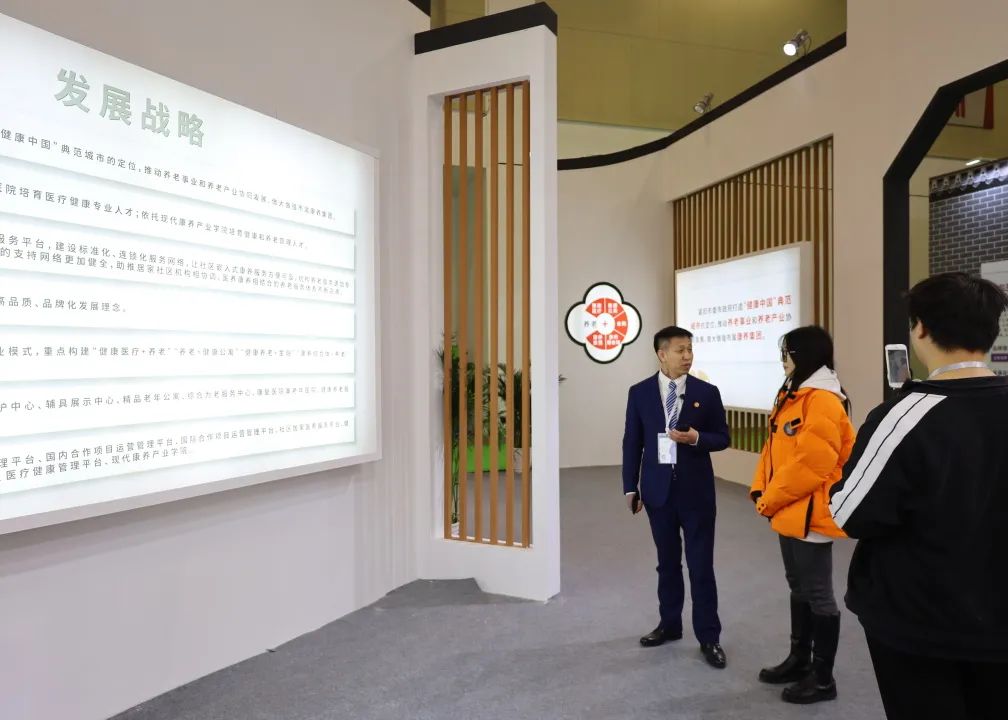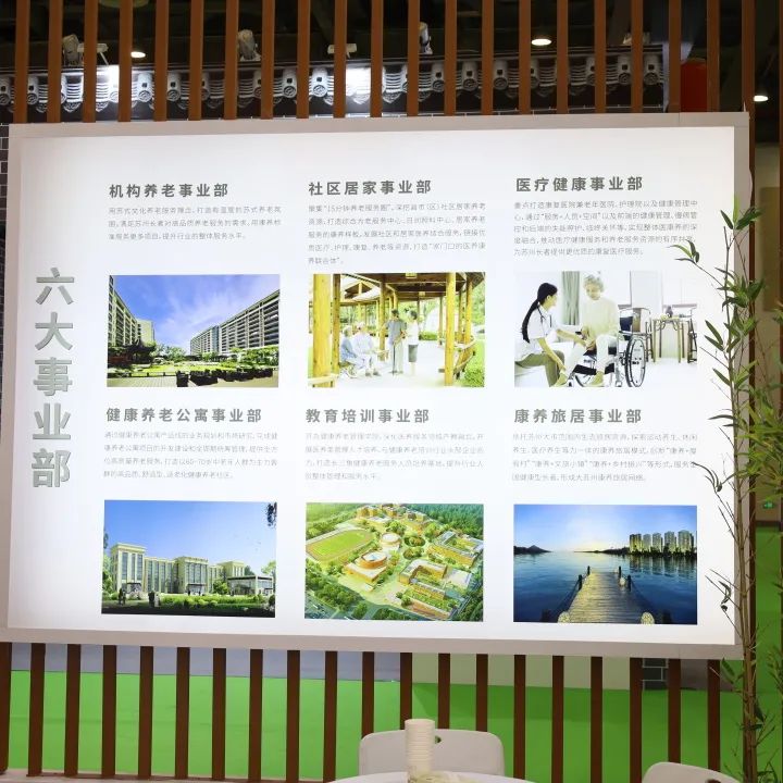 苏州康养集团在健康养老服务展区设立展厅,展厅以“健康中国 美好生活;江南文化 苏式康养”为主题,集中展示苏州康养集团的核心理念、发展目标、发展战略、商业模式和各服务、业务平台。本次展览,苏州康养集团首次对外展示了“十四五”期间的发展战略——“1234567”发展战略,集团将聚焦1个发展目标,依托康复医院兼老年医院培育和现代康养产业学院培育医疗健康专业人才、健康和养老管理人才2类核心人才,打造居家、社区、机构3大服务平台,坚持市场化、多层次、高品质、品牌化4项发展理念,重点建构“养老+健康医疗”“养老+健康公寓”“养老+金融”“养老+康养综合体”“养老+康养旅居”5种商业模式,打造6大示范样板工程,全面构建7类业务平台。