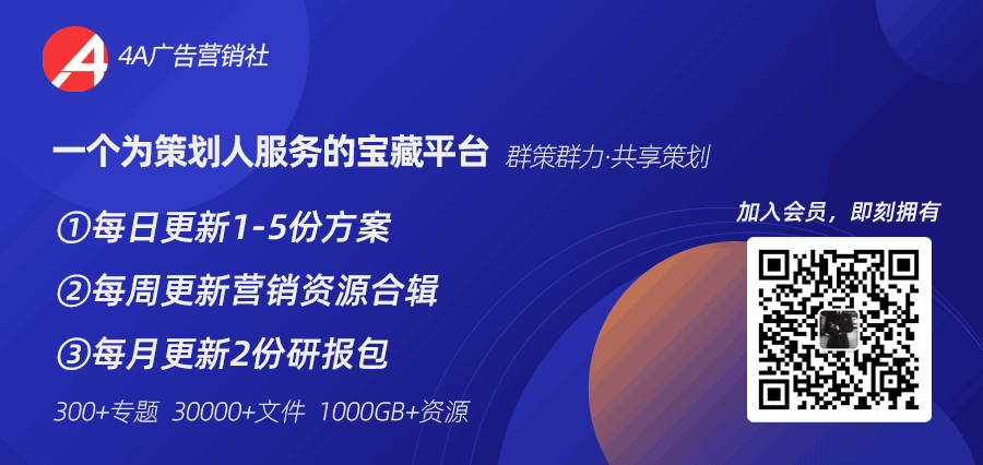 点击左上角蓝字4A广告营销社,设置星标★ 第一时间获知全网独家策划方案,不定时领取最新整理的营销合集。