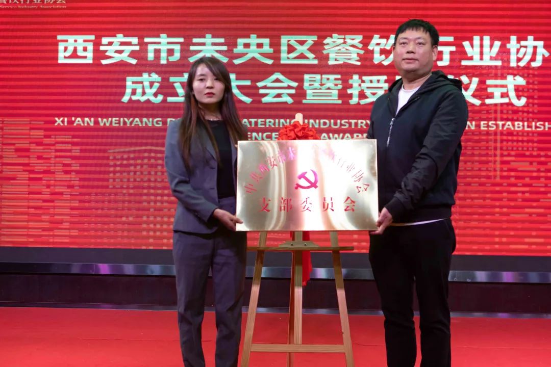 会议通报了第一届理事会领导班子的选举情况,宣读了西安市未央区餐饮行业协会及协会党支部成立的重要批文。西安市未央区市场监督管理局党委书记、局长孙海鹏、西安市未央区行政审批局副局长朱蓉及西安市未央区市场监督管理局其他领导对协会成立、党支部成立揭牌,并向理事长单位汉乐府酒店、会长吴楠、秘书长黄瑾、监事长张辉以及副理事长单位、理事单位授牌合影。大会共200余家餐饮企业、相关行业组织等代表参会,陕西省旅游协会会员部副部长赵俊敏出席会议。