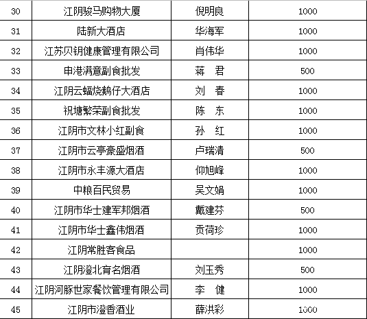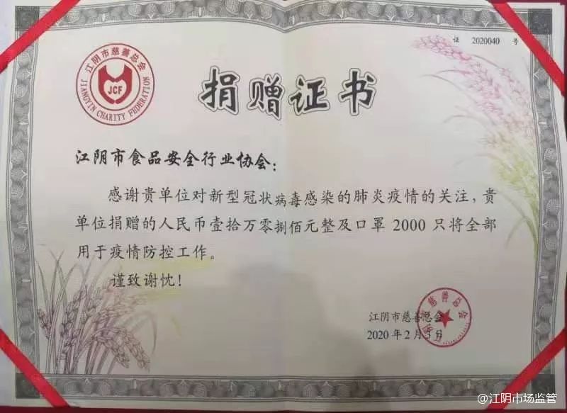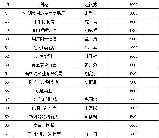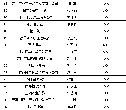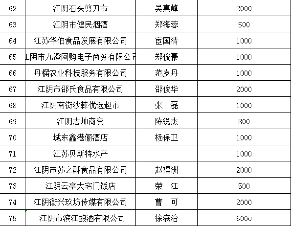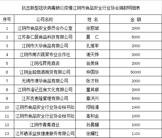 江阴市食品安全行业协会捐款明细表