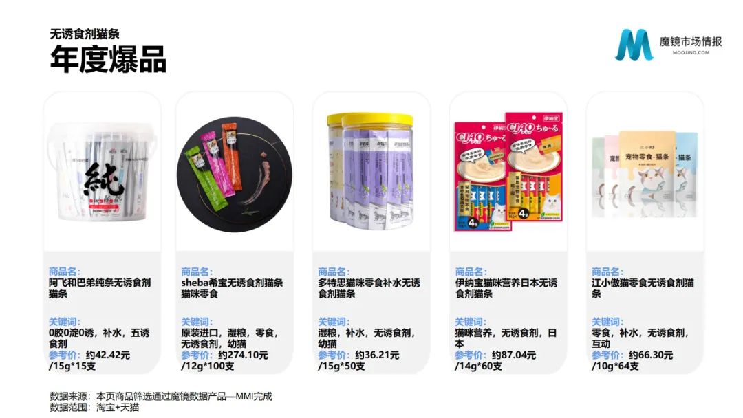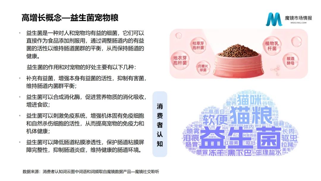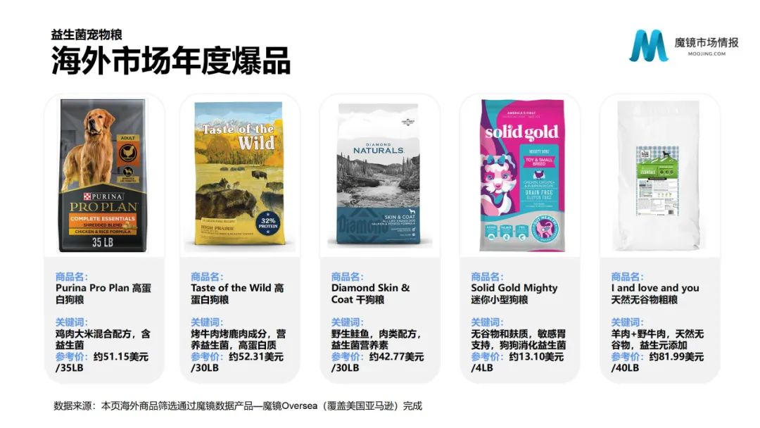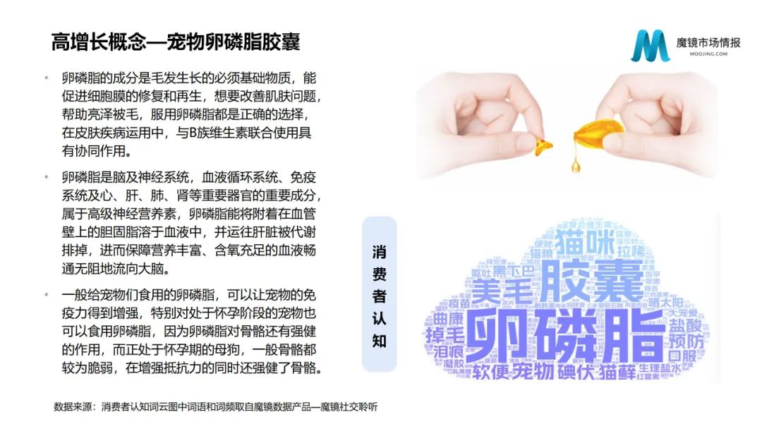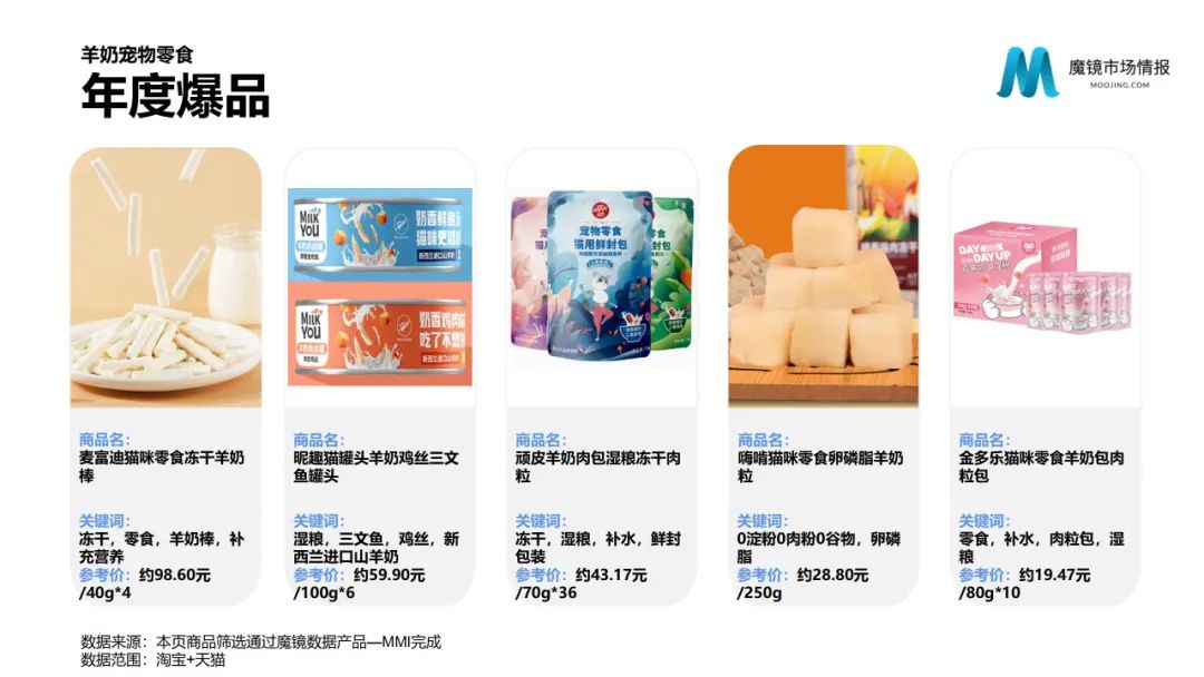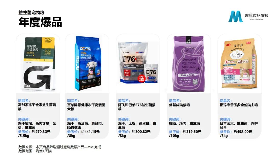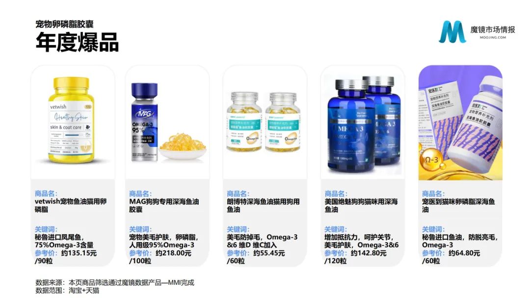 益生菌宠物粮、无诱食剂猫条、羊奶宠物零食以及宠物卵磷脂胶囊。
