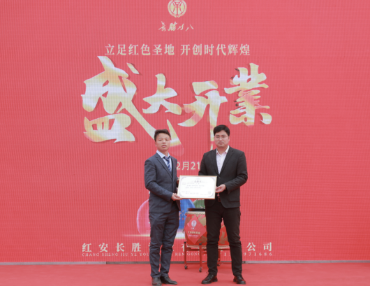 2月21日上午,红安长胜酒业有限责任公司举行揭牌暨开业仪式。湖北省酒协秘书长王远致辞,并向长胜酒业颁发产品质量品鉴证书,红安县委副书记、县长胡广宣布红安长胜酒业开工投产开业,余品祥、阮元兵等县领导,长胜酒业董事长刘兴平参加活动。