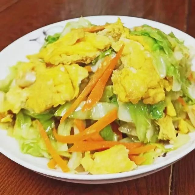 包菜炒鸡蛋(鸡蛋15克、圆白菜40克)