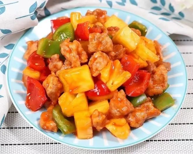 菠萝咕咾肉(菠萝5克、猪肉20克、甜椒10克)