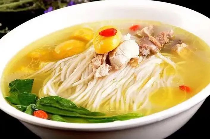 鸡汤面条(母鸡40克、面条60克、小白菜30克)
