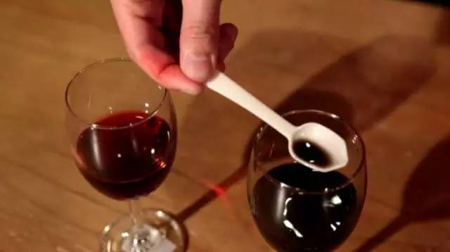 试试看,往酒里面放碱水,实验结果和网上传的一样,色素勾兑的红酒加了碱之后,颜色没有变化;