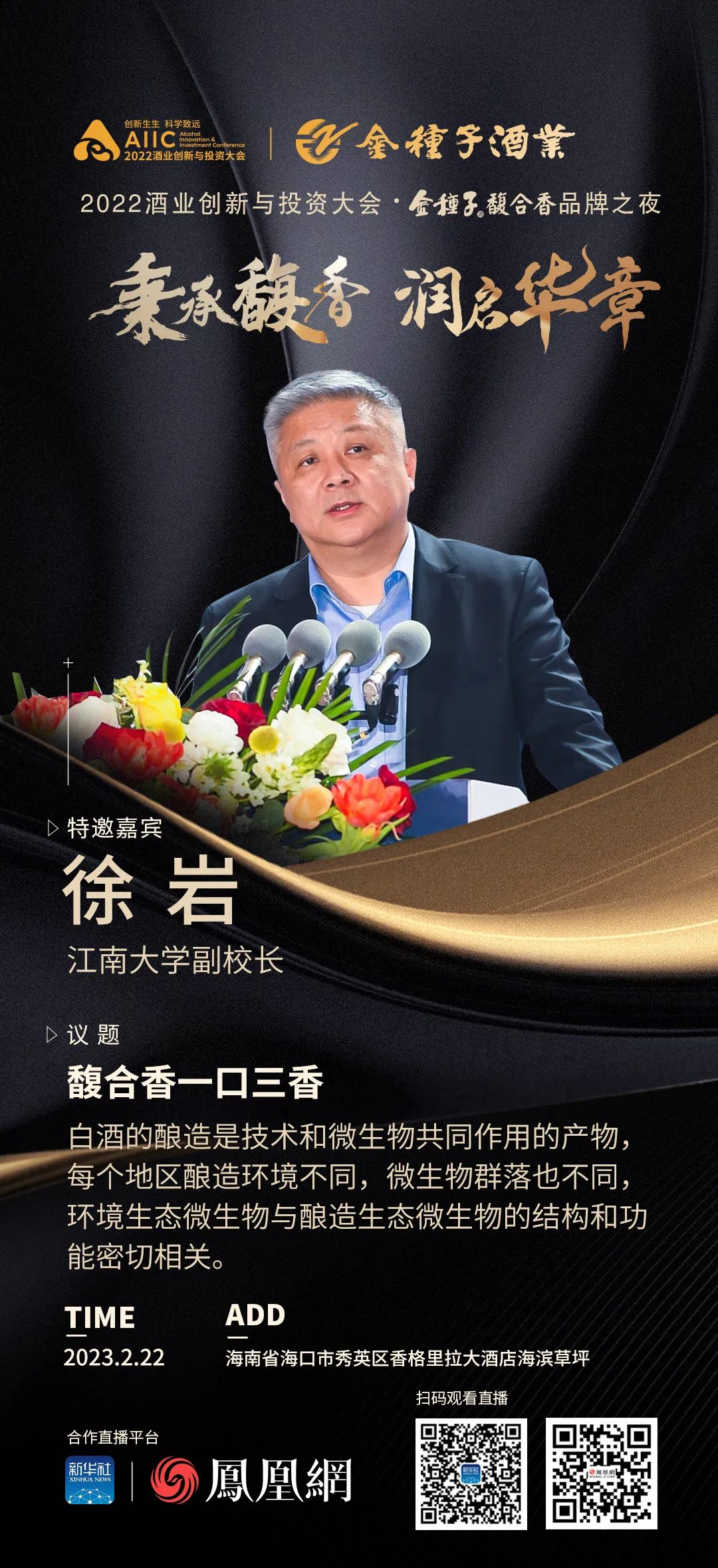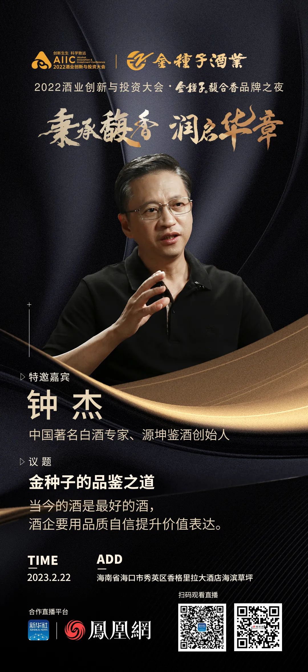 2月21-24日,以“创新生生 科学致远”为主题的2022酒业创新与投资大会第二阶段会议,将在海口·海南国际会展中心举行。金种子酒业作为受邀嘉宾,也将参与本次盛会,并将于2月22日在海口香格里拉大酒店举办金种子馥合香品牌之夜。江南大学副校长徐岩,中国著名白酒专家、源坤鉴酒创始人钟杰,盛初咨询董事长柴俊等大咖齐聚,寻馥香之源、论馥香之道。