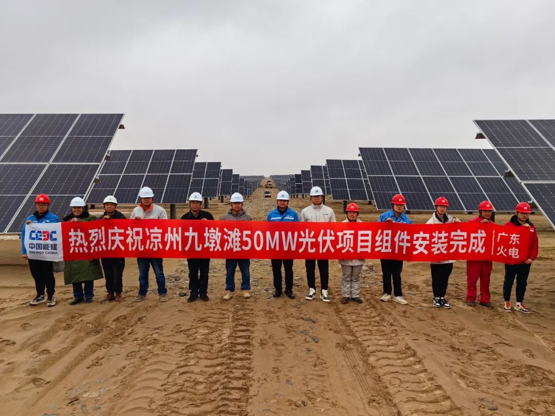 近日,甘肃电投酒汇公司凉州九墩滩50兆瓦光伏项目组件安装全部完成,实现了阶段性节点任务目标,后续将转入电气接线试验、消缺整改、自检验收及调试阶段。