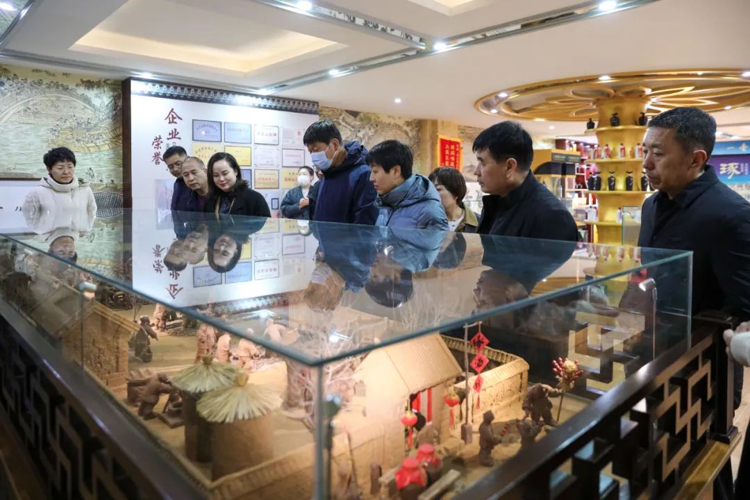 王久荣团长一行先后到酿酒车间、满族民俗文化博物馆、洞藏酒窖、企业文化展厅等处考察,认真听取了张雅丽董事长对琢酒历史、酿造工艺、企业文化、社会公益、生产经营等有关情况介绍。