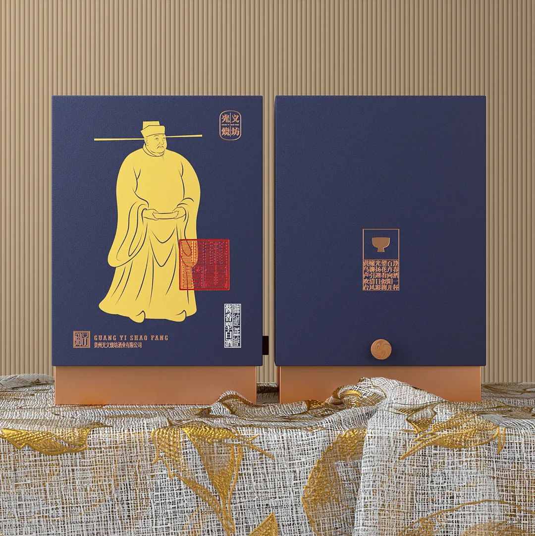 品牌和包装是所有消费品的第一竞争维度。博创设计查阅了相关历史文献资料,对于光义烧坊品牌及产品包装的风格定义逐渐清晰,宋太宗赵光义的形象成为光义烧坊包装主要形象识别的首选,形成自身独有的产品形象,以符号化的形象与消费者沟通是最直接有效的,也是最容易被识别和记忆的。