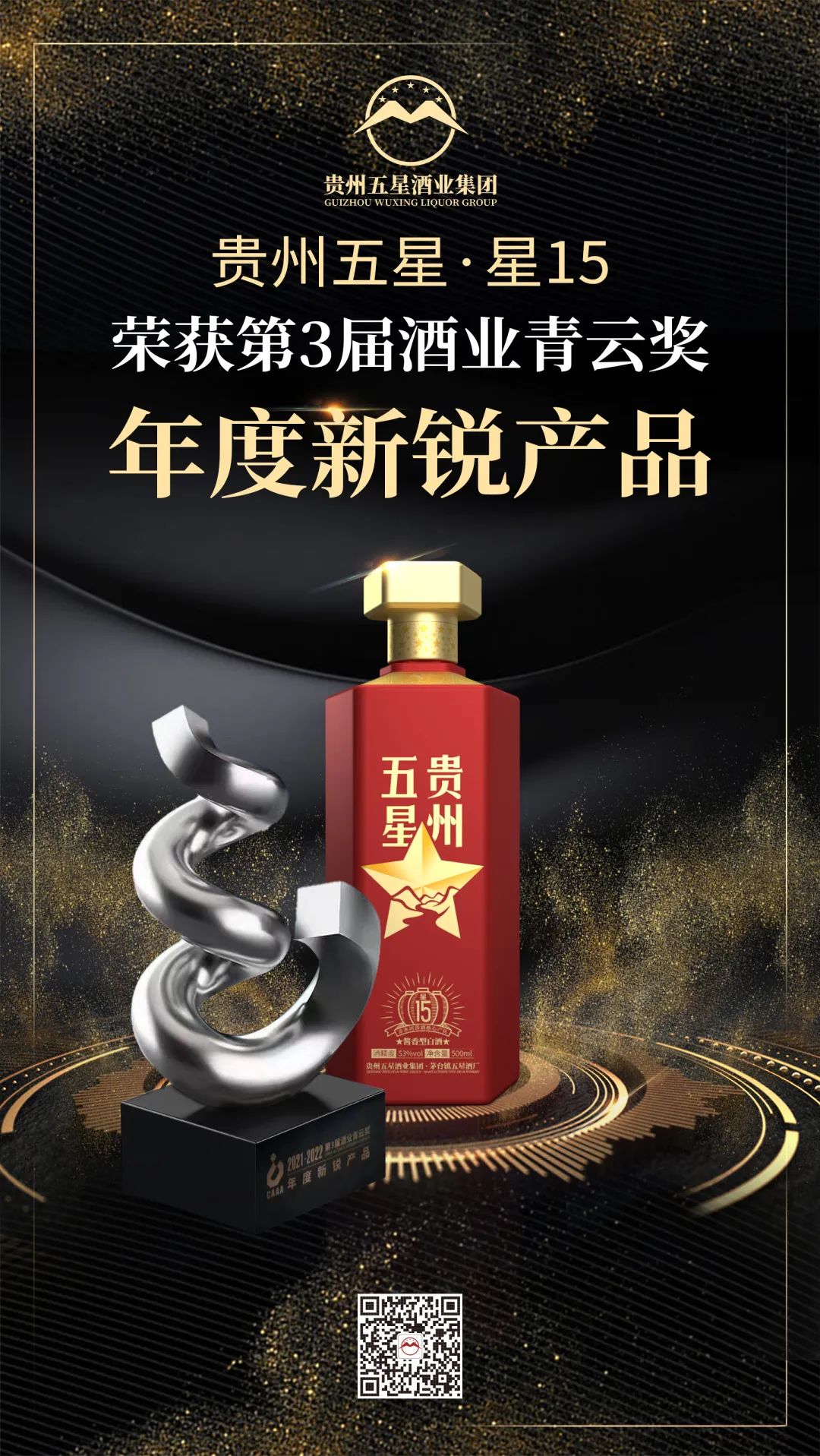 2月23日,在第三届酒业青云奖颁奖典礼上,贵州五星酒业集团核心大单品贵州五星·星15斩获“年度新锐产品”殊荣,实力所至,荣耀加身!