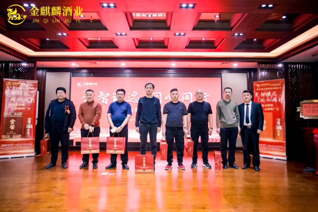本次会议上,金麒麟酒业与鑫乐源商贸有限公司通过现场品鉴、节目互动等氛围营造,向所有的参会人员传达出尊贵金酱酒独有的文化内涵与品质,不仅提升了品牌形象,也将会议气氛推向了高潮。