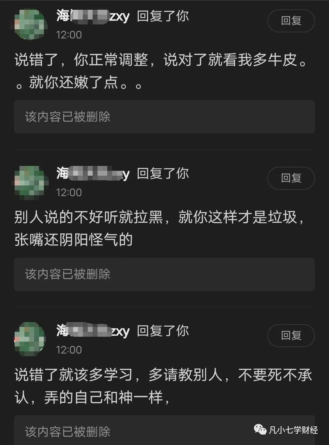 我们完全可以把主动权掌握在自己手里。像下面这类人,我们可以选择花时间去怼他——之前我就是这么做的,也可以不理会。不过,花时间和他们斗嘴,其实是一件非常不划算的投资。时间是我们最宝贵的资源,应该用在重要或美好的事情上。因此,我打算今后直接删掉他们的言论,并屏蔽。