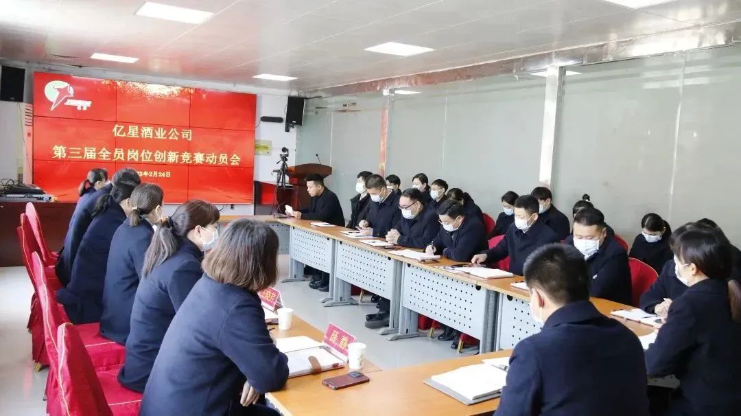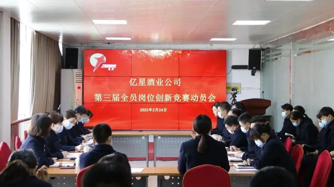 2月24日上午,亿星酒业公司在集团二楼会议室召开2023年第三届全员岗位创新竞赛动员会,集团工会主席李艳勤、酒业公司经理单瑞霞、副经理王晓芹、孙永华、薛静、各中心部室经理、市区门店店长等35人参加会议,酒业公司连锁门店、渠道部、后勤部室人员通过钉钉线上参加会议。