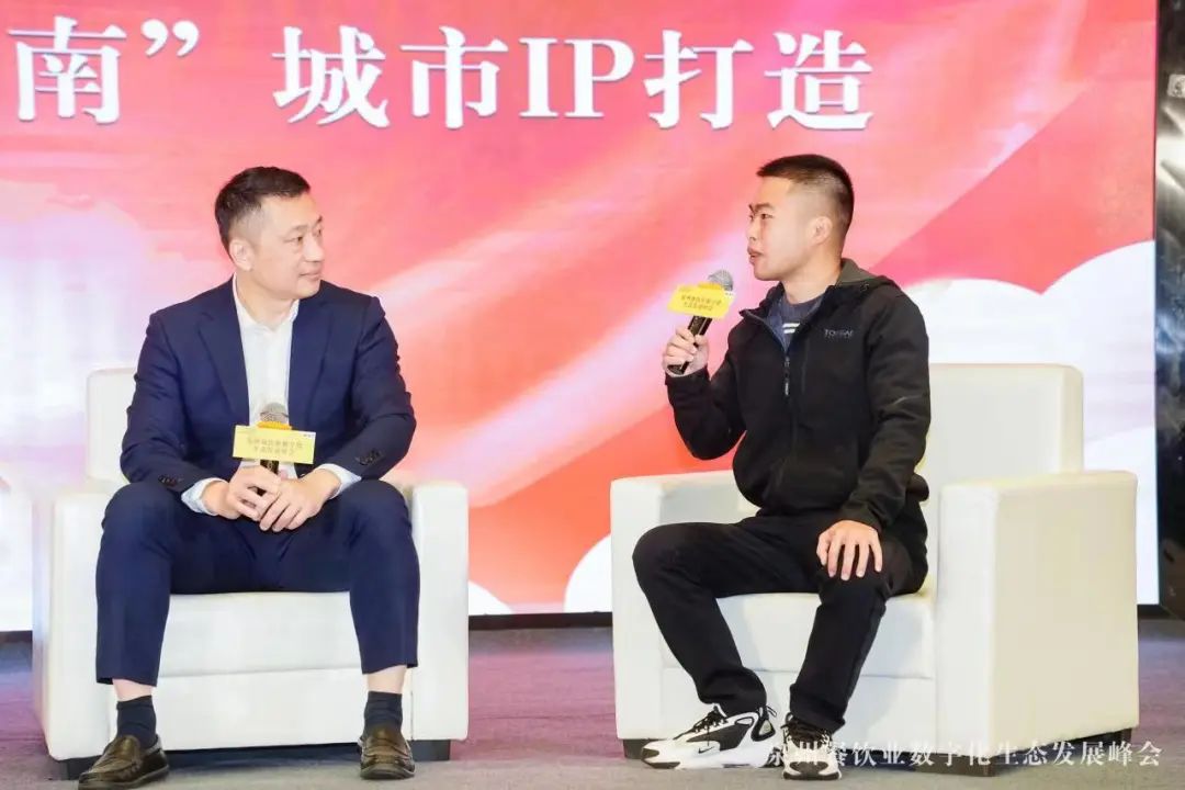 蓬华特色美食——蓬华屁股面(卡撑面)的传承人郭炜龙作为传统美食的商户代表,上台和与会人员畅谈,以自身实际说明了餐饮业在多样发展的时候,数字化餐饮对商户起到的重要作用。他认为数字化餐饮能够很好帮助商户实现线上线下相结合,在线上,通过外卖平台,增加客户来源;在线下,通过数字化实现扫码点餐,自助取餐等,很好的节省了人工成本,实实在在的给餐饮商户带来了很大便利。