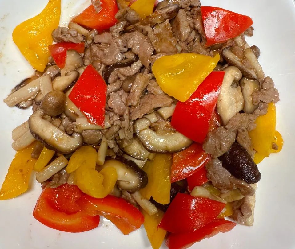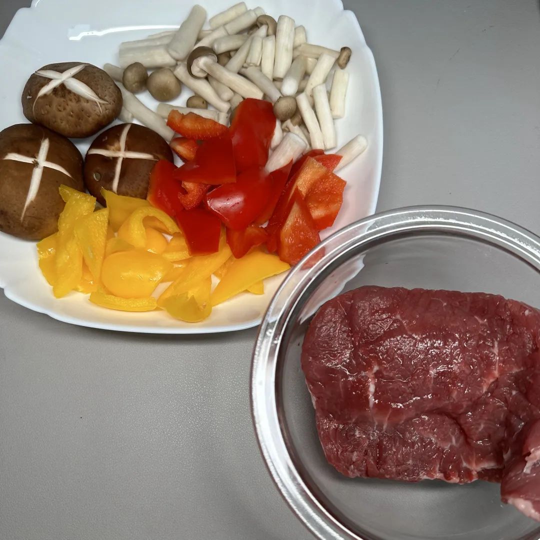 牛里脊、青红彩椒、海鲜菇、香菇