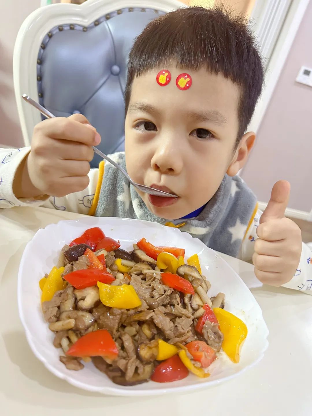 这是一道荤素兼备、营养均衡的美食。鲜香嫩滑的蘑菇和牛肉,搭配清甜爽脆的双椒,牛肉富含满满的优质蛋白,蘑菇、双椒补充膳食纤维,三者有着丰富的维生素,既能增强身体抗病能力,又能促进食欲,非常适合正在长身体的小朋友们食用。