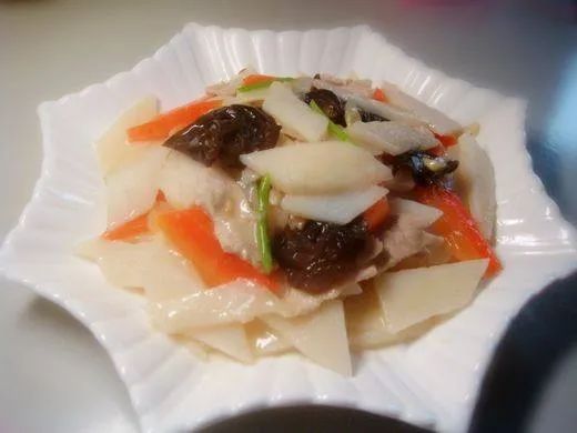 山药溜肉片、酱焖小鲅鱼、佛手包、八宝粥