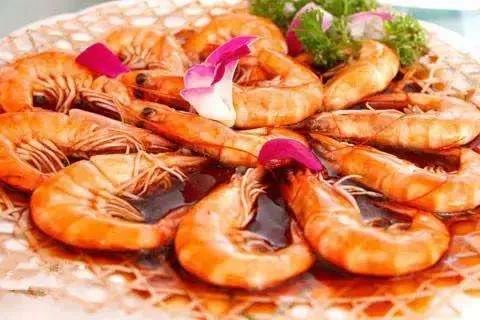 西葫木耳炒蛋、油焖大虾、米饭、南瓜玉米粥