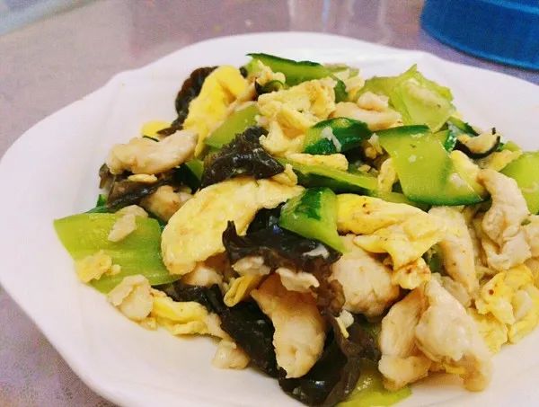 黄瓜:50克、面粉:50克、猪肉:15克、鸡肉:50克、大米:10克