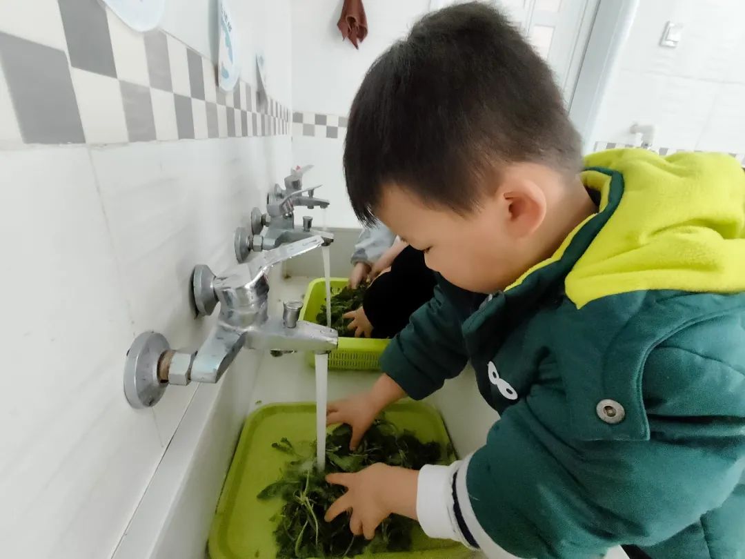 本次的家长进课堂活动,中一班邀请王浚宸的奶奶做客“食育小厨房”和萌娃们开启荠菜美食之旅。