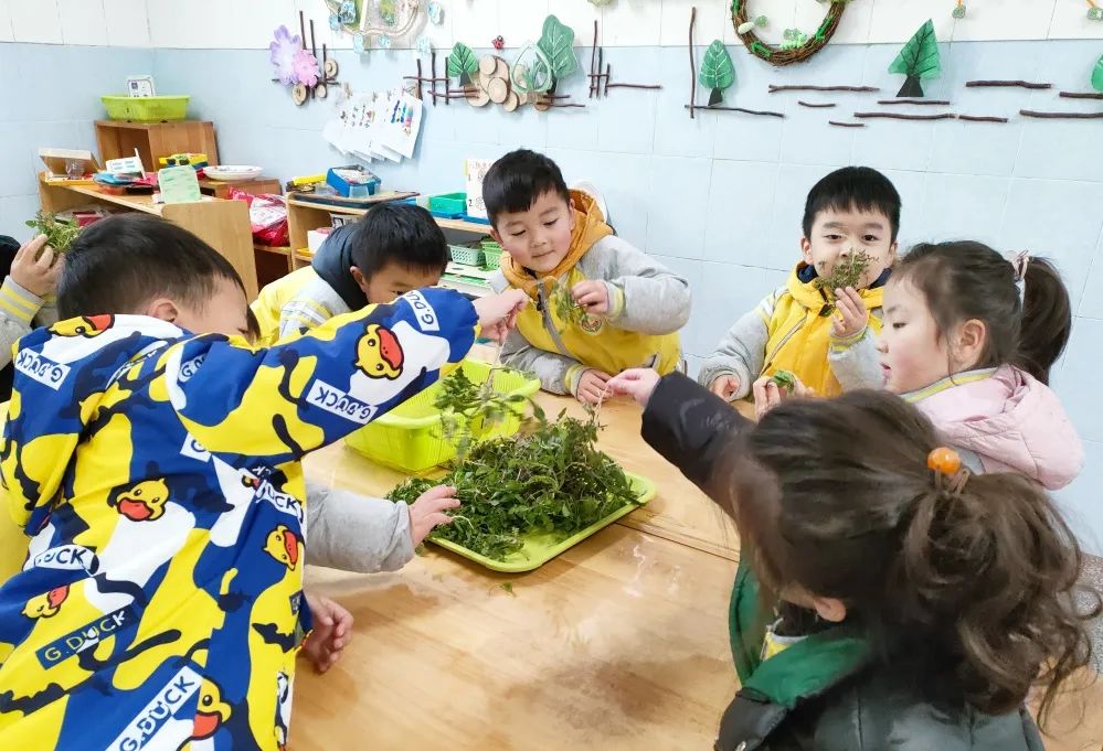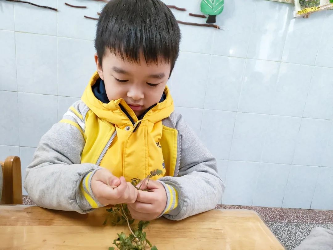 萌娃们通过亲身的体验,看一看、摸一摸、闻一闻来加深对“荠菜”的认识和了解。