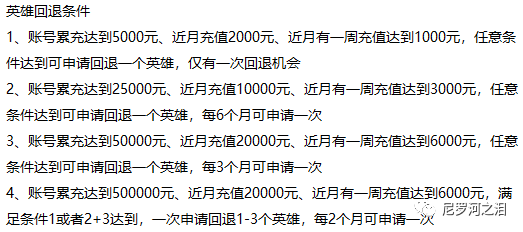 ①联系自家的客服,输入‘回退英雄’,询问对应条件。